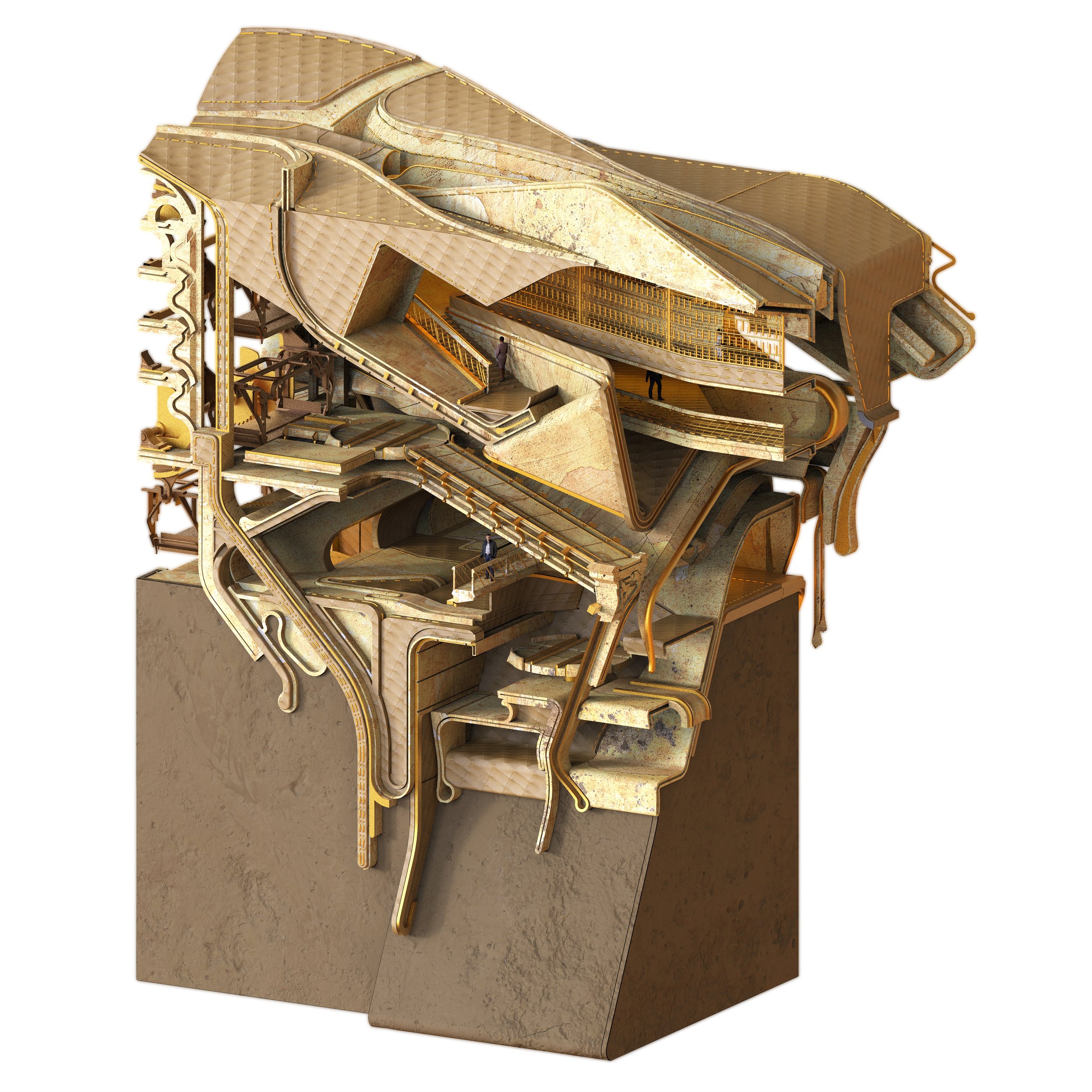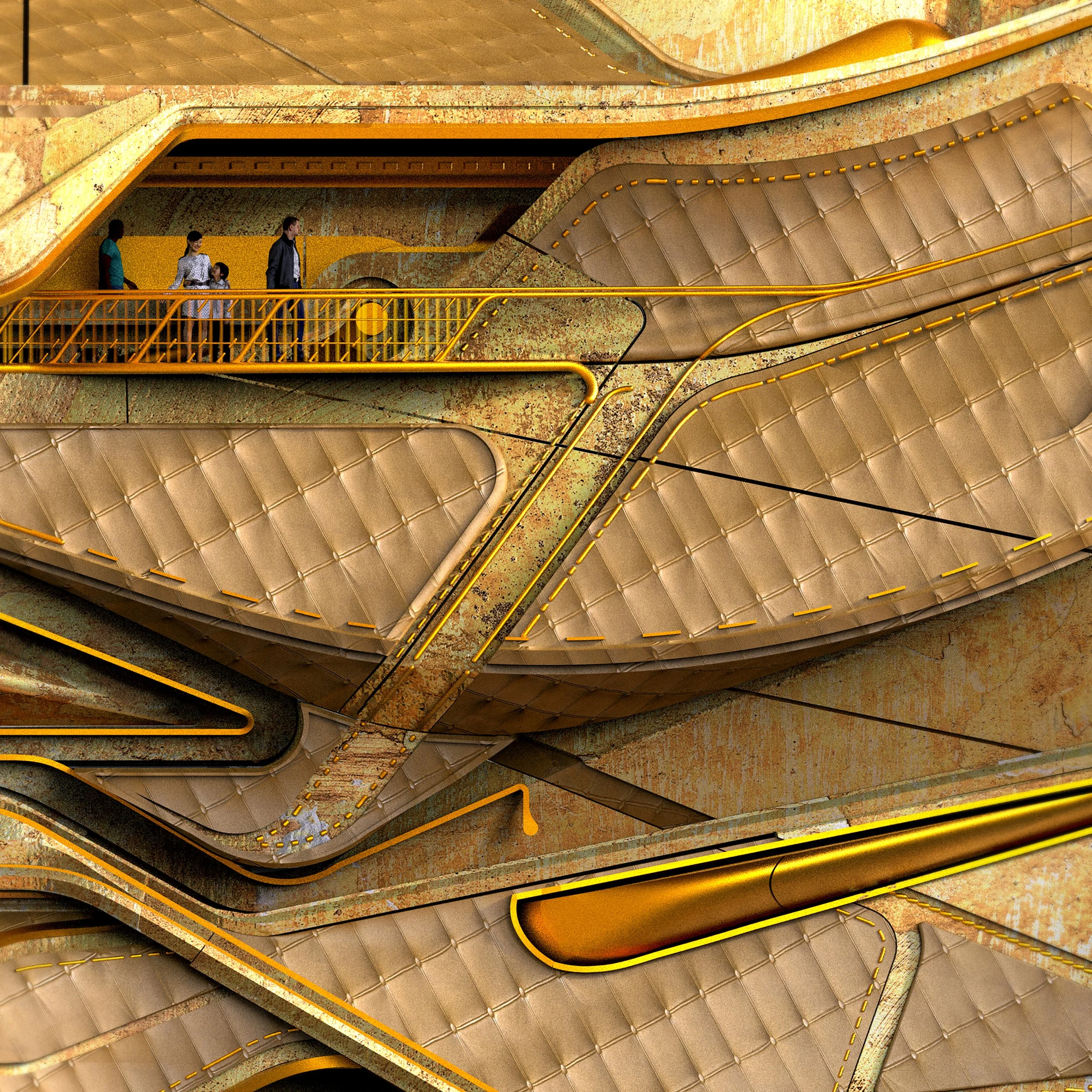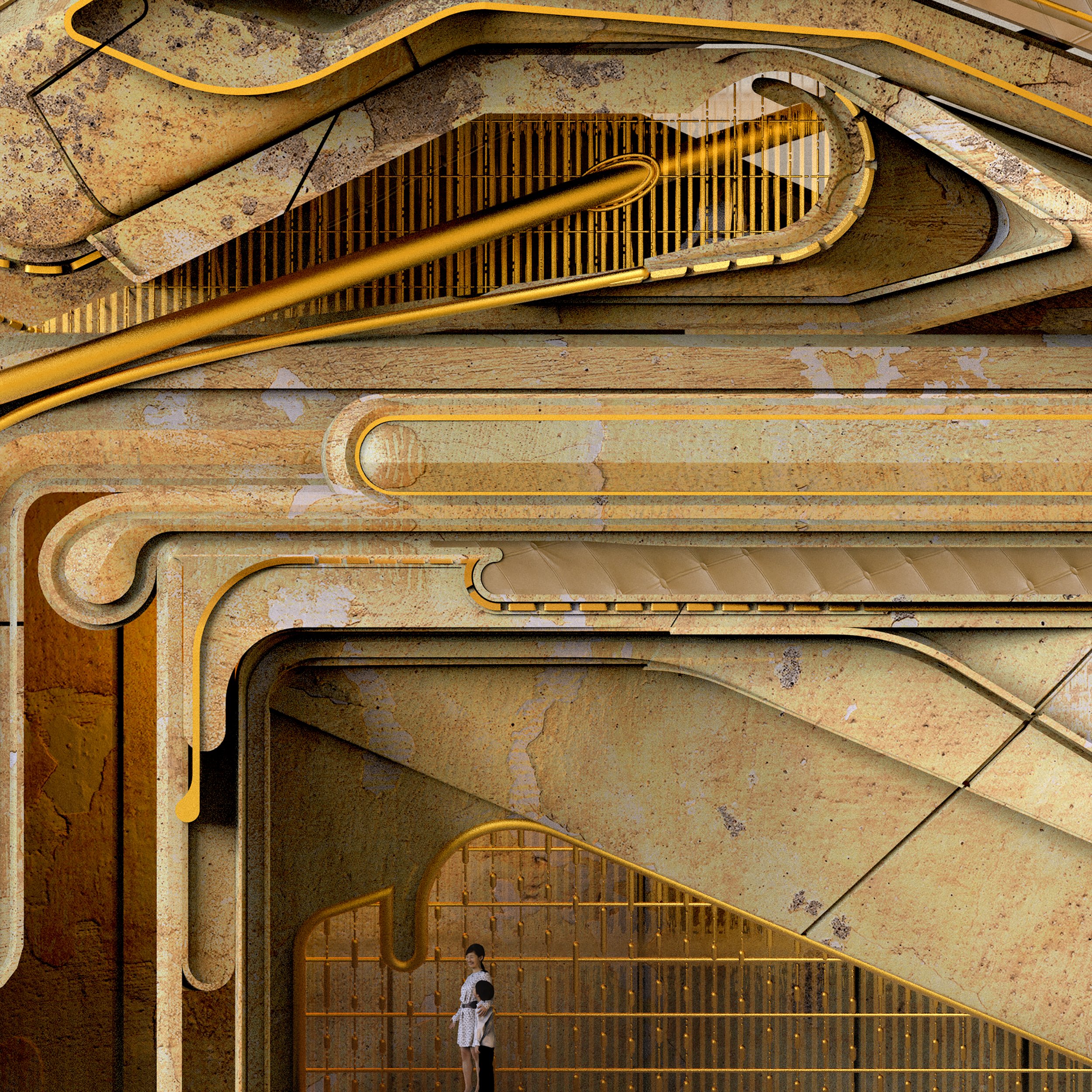 Duplicitous Access is concerned with how architecture can subvert ways we view displayed art and artifacts. Here, objects of display appear in view from juxtaposing programs, without allowing the observer a clear idea on how to access the displayed object. For example, one can view an artifact from a reading room or the lobby or even the restroom, while the displayed object exists in a different space. Visually, these displayed objects are discovered or aligned into view with the aid of optical illusions that prompt the observer to snap the illusion in place.